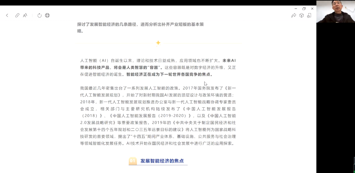 紧接着,邓经理结合两篇权威性文章,介绍了人工智能的基石以及人工智能的国家战略、人才需求和公司关于人工智能专业人才培养目标,并重点向同学们解答了应如何学好自身的专业学科。