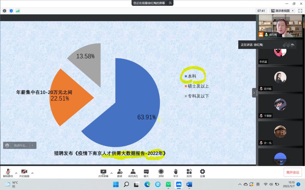 5月7日,w66旗舰厅通过腾讯会议平台,以线上方式成功开展考研交流会,旨在进一步推进公司考研工作和学风建设,有效帮助公司员工了解考研信息,科学制定复习计划。此次交流会由徐红梅老师主持,公司2019级、2020级全体同学参加。
