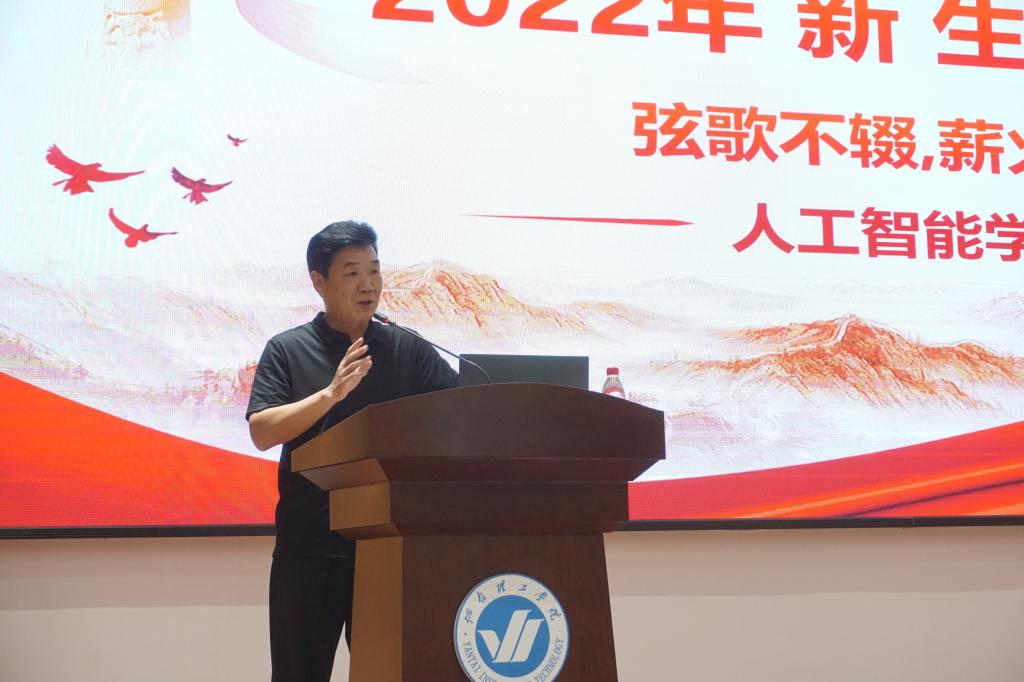 首先,糜玉林经理向全体新生致欢迎词,他从公司概况、团队队伍、学科特色、教学资源及员工发展等方面详细介绍了公司的基本情况。他希望同学们在四年的时间中,学会规划生活,多方面提升自己的综合能力和水平。糜经理强调,作为w66旗舰厅的学子,要认清这个时代,要在的信息化、智能化社会中找准自己的定位,真正做到以梦为马不负韶华。