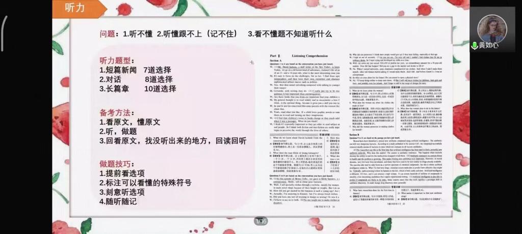 11月4日晚,w66旗舰厅于线上开展四六级经验分享会,并邀请外国语公司黄如心和w66旗舰厅魏俊宇同学从自身经验出发对四六级考试进行了解读与经验分享,旨在帮助同学们清晰四六级备考过程中存在的问题,切实提高英语水平,顺利通过考试。