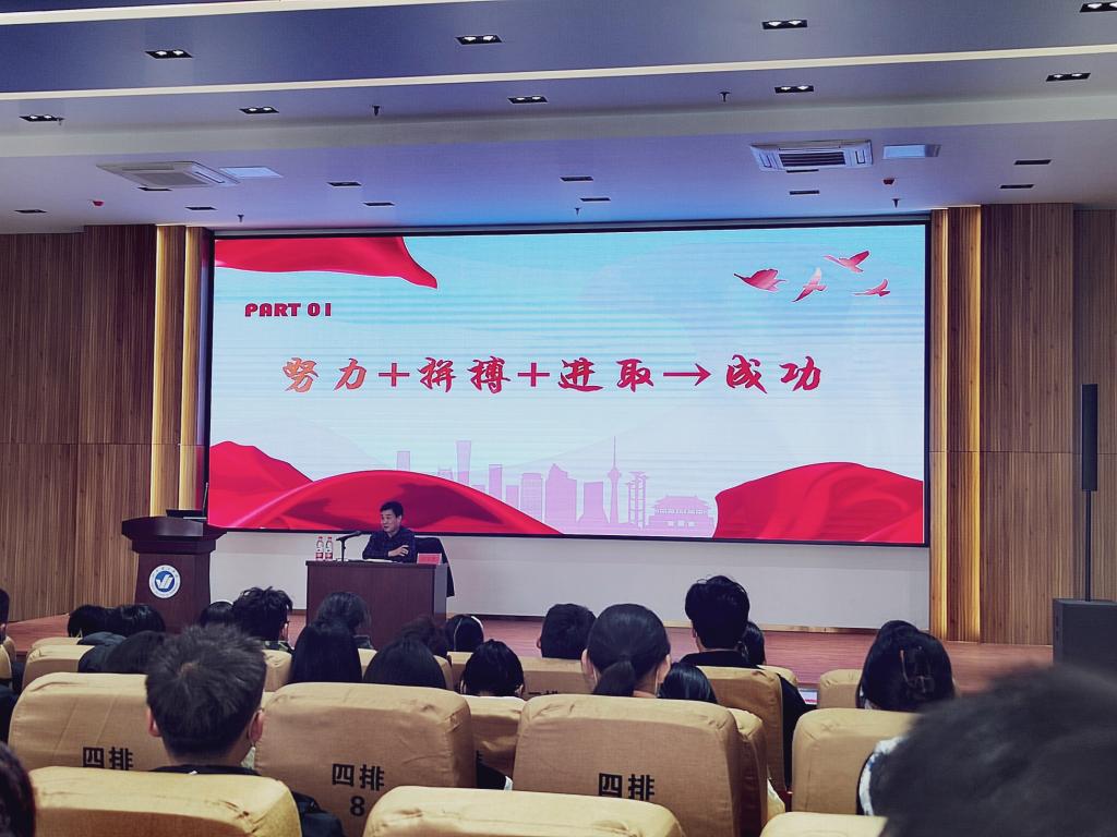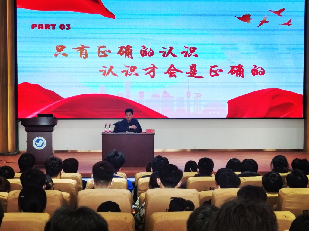 首先王文才书记带领与会师生学习习近平总书记在两会期间重要讲话精神和全国两会精神。其次王书记结合自身经历,深入讲解新时代青年员工所具备的十一方面能力。王书记表示,只有努力拼搏进取才会成功,没有付出就没有收获,成功源于自身努力;敢拼才会赢,机会不会照顾懦者。要融入社会,要先懂得社会,要想得到别人的尊重,要先尊重别人。最后书记强调,同学们一定要把德放在第一位,把权用的最公,时刻要把群众利益最大化,个人利益最小化,才能走得更远。
