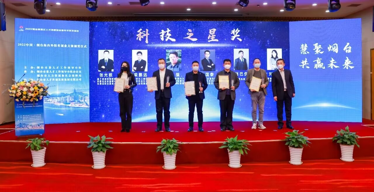 经过山东赛区预赛、山东赛区决赛、国内4大赛区决赛,张光轶老师申报的项目在279个项目中脱颖而出,并最终成为20个获奖项目之一,其本人也被评为“2022中国烟台海内外精英创业大赛科技之星”。