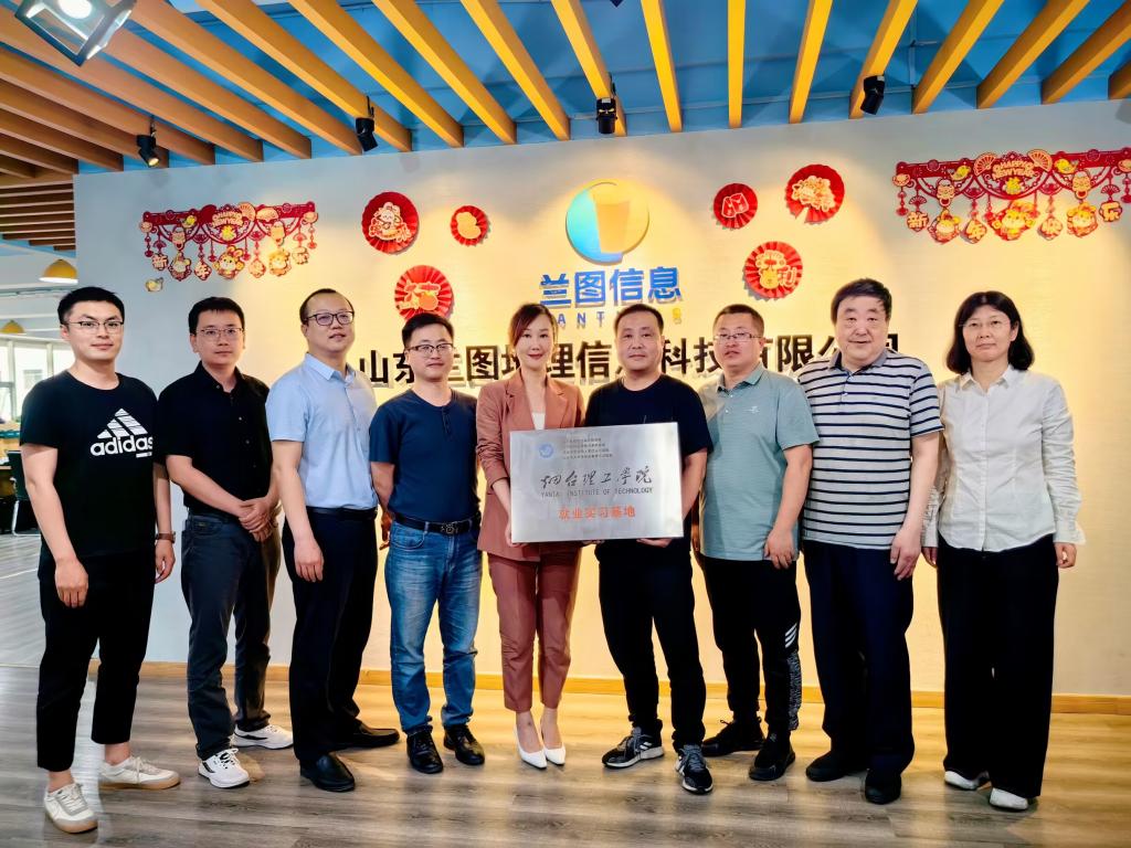 5月31日,公司副经理李川老师、迟殿委老师、韩爱丽老师一行3人赴山东兰图地理信息科技有限公司,开展公司年度第5批访企拓岗就业交流活动,并与企业方领导举行了就业实习基地揭牌仪式。