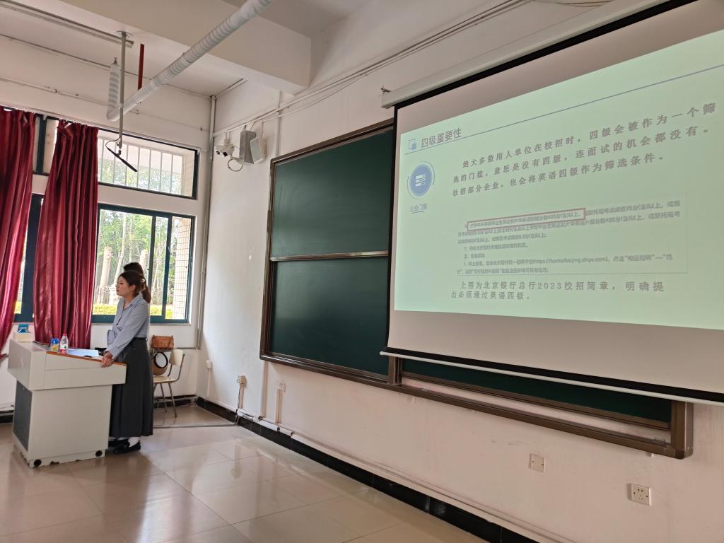 6月6日,公司于一教119召开英语四六级经验交流会,本次会议邀请王仲顿老师及高分通过四六级考试的学长学姐分享四六级考试经验。
