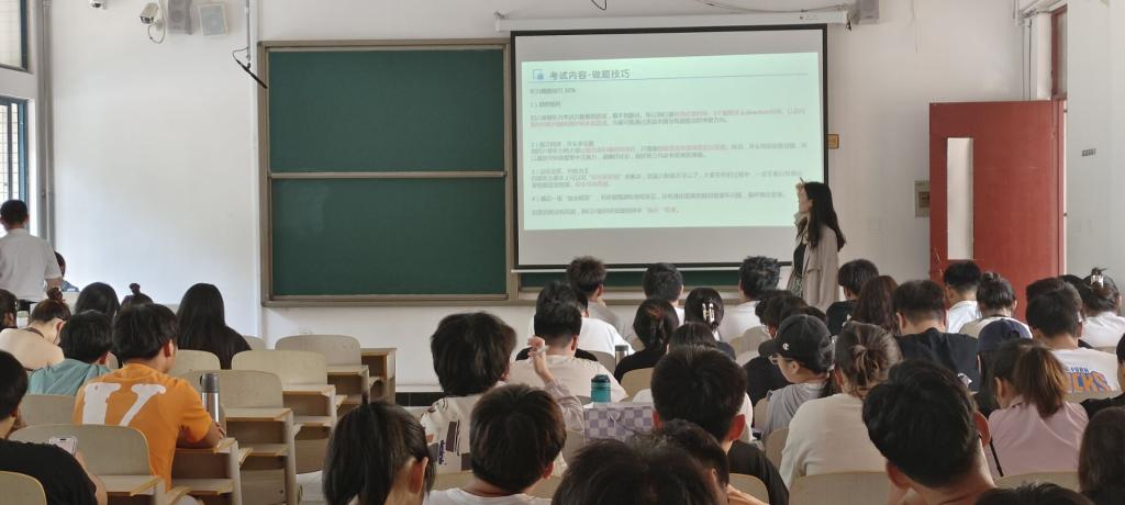 王老师仔细归纳了英语四六级的通关秘诀,着重向同学们讲述了如何在练习真题的过程中提升英语学习能力、阅读能力、听力能力和写作能力。接着,他又从写作、听力、阅读和翻译四大模块分享备考技巧和考试经验,结合真题范例对不同题型进行针对性分析指导和建议。王仲顿老师认真地为同学们传授经验,交流学习方法,加深了同学们对四六级考试的了解,使同学们可以更好地针对性地投入到英语学习中,同学们通过本次经验分享会也学到了许多应试技巧,提升了自己的应试能力,同时缓解了同学们面对考试产生的紧张情绪。