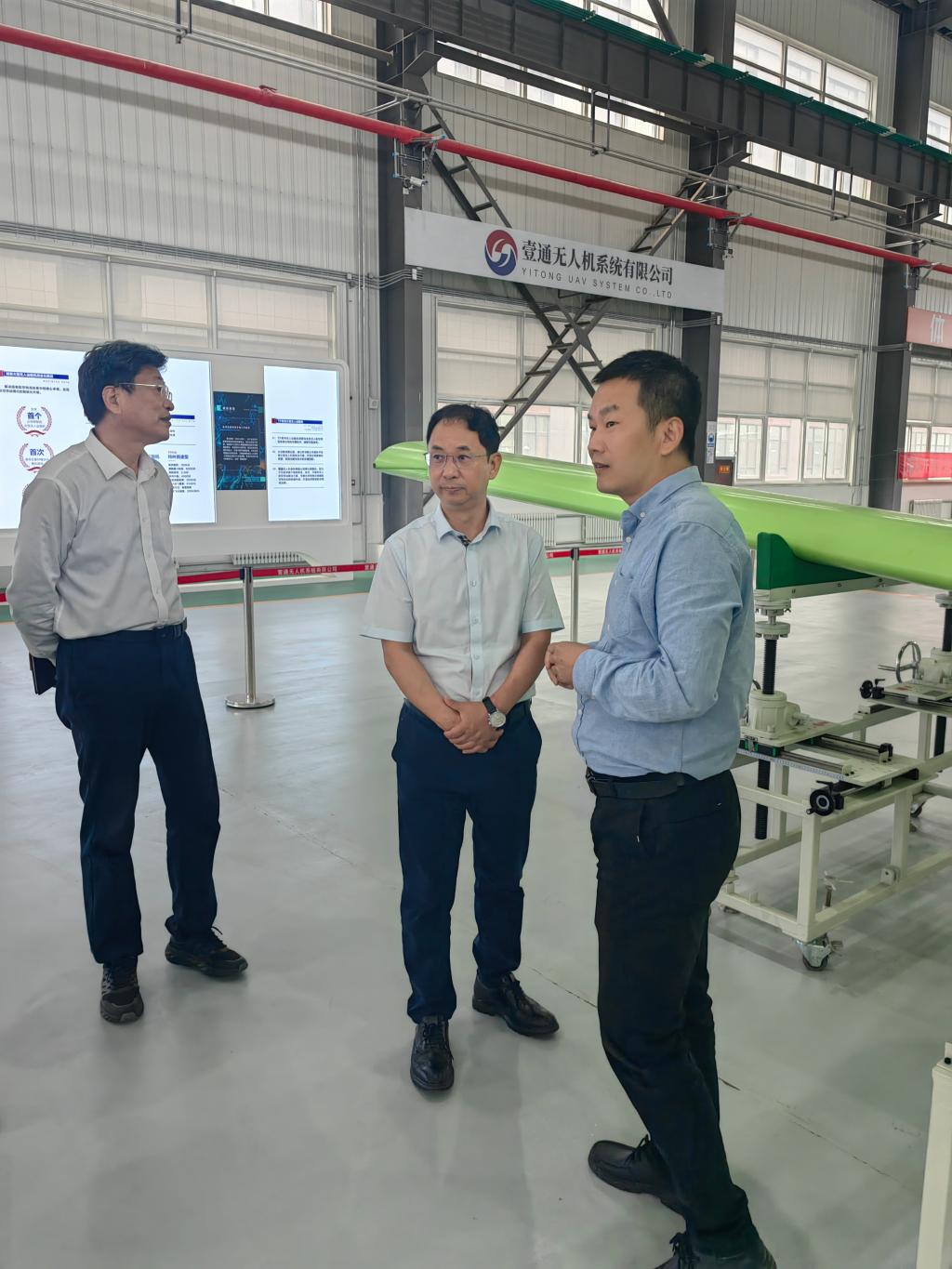 烟台业达经济发展集团董事长李建学、副总经理兼壹通无人机系统有限公司董事长陆建明、首席科学家董鹏生、总经理金舸等相关部门领导,热情接洽了公司老师。首先,公司领导一行来到壹通无人机系统有限公司生产线,详细参观并了解了TP500大型无人运输机、TR100垂直起降固定翼无人机装配线,并观看了TP1000、TP2000大型固定翼无人运输机以及TP200、TR50多用途特种作业无人机的相关介绍。在之后的座谈交流环节,校企双方结合各自发展领域,针对下一步合作开展“低空经济”新质生产力深度协同、航空类无人机学科专业联合共建、产学研合作具体事宜,进行了热烈的探讨和交流,取得了广泛共识,并初步明确了下一步几项具体工作的推进意向。