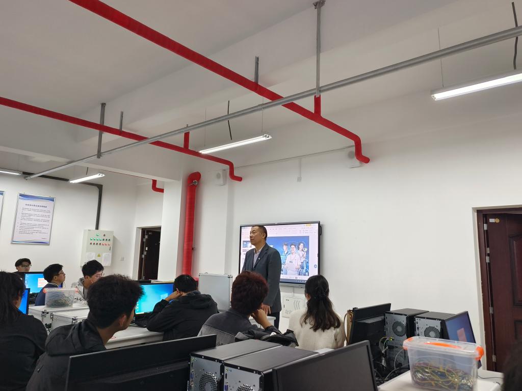沈老师通过备赛时、比赛期间以及赛后总结期三个阶段展开分享。结合参赛经历向同学们讲述了竞赛历程,详细说明了每个时期阶段的任务和方向。随后,姜老师着重强调备赛相关内容,前期基本plc基础学习的关键性,过程中团结协作的重要性,并给实际问题展开分享。接下来 ,往届参赛获奖选手进行了经验交流,分享了参赛的经验,并表示要保持良好的比赛心态。最后,糜玉林经理进行了总结发言,对参赛的师生表示诚挚的感谢,感谢他们在比赛中展现出的卓越才能和拼搏精神。同时,对员工参加大赛的意义进行说明,强调智能制造在当前工业发展中的重要性,以及大赛对于培养未来科技精英和领袖的积极作用。