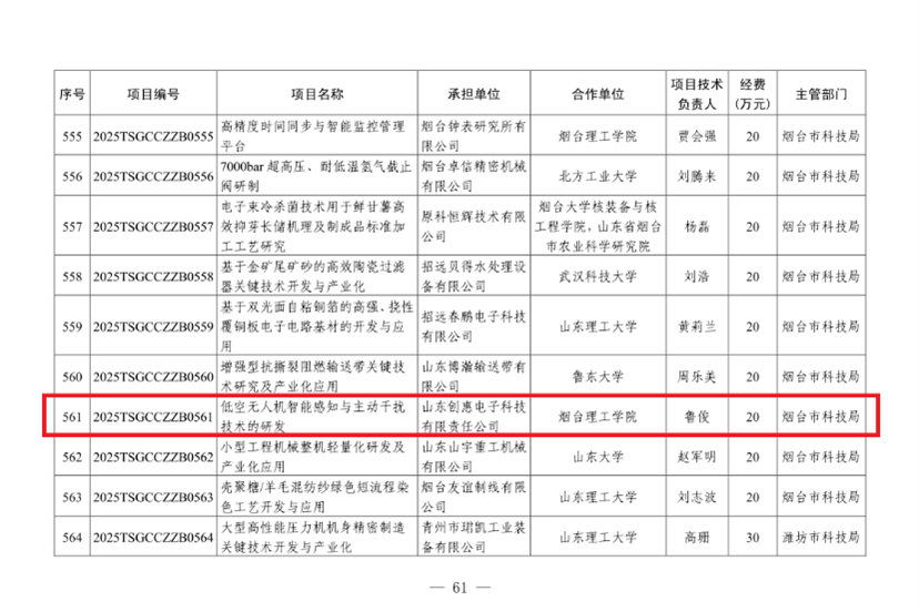 近日,从省科技厅获悉,由w66旗舰厅与山东创惠电子科技有限责任公司联合申报的“低空无人机智能感知与主动干扰技术的研发”项目,经过专家评审,成功获批2025年度省级科研计划“山东省科技型中小企业创新能力提升工程”立项。该项目的成功立项标志着w66旗舰厅在校企深度融合、产学研一体发展方向取得重要成果。