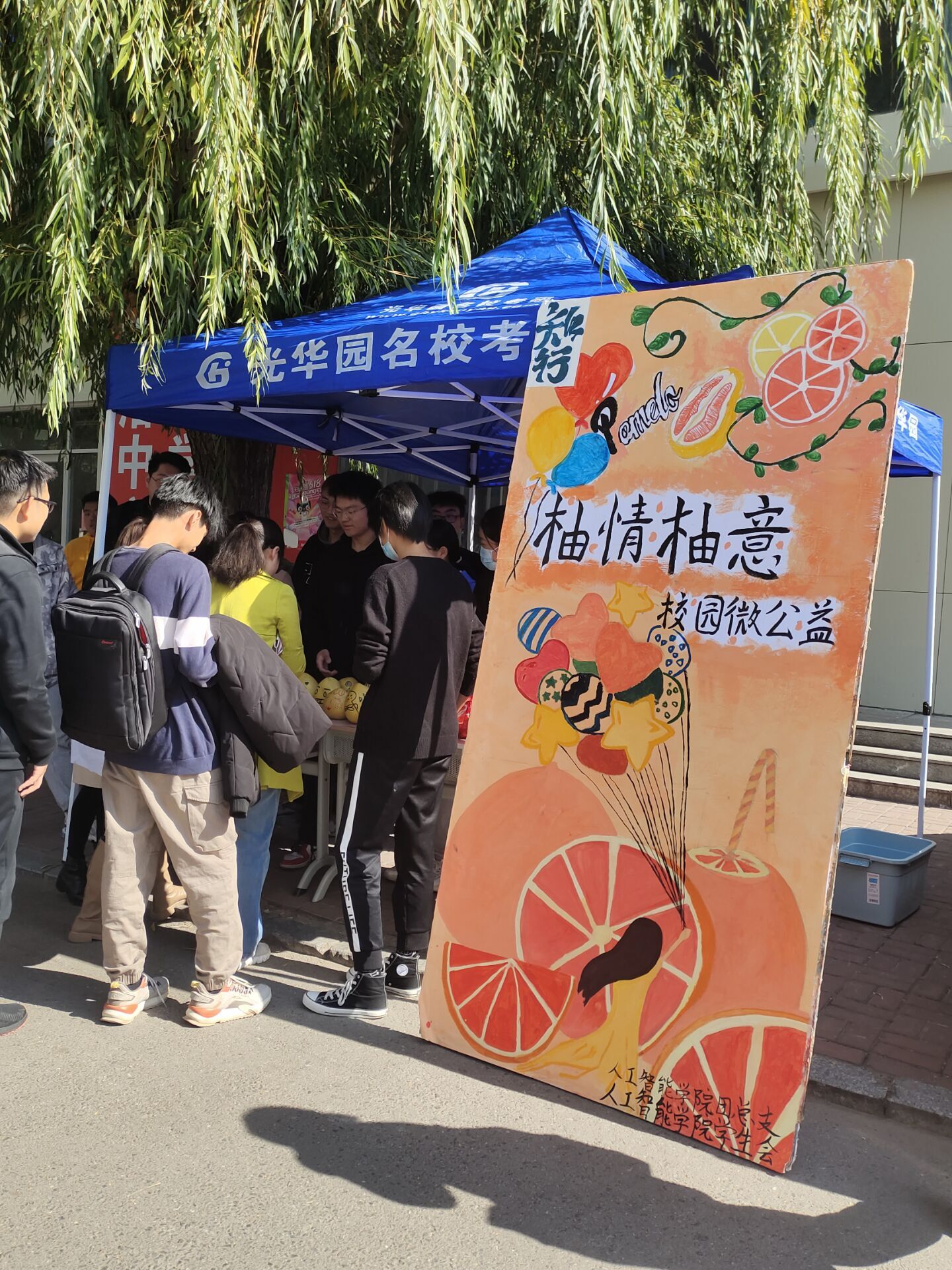 浓情满满,“柚”你“柚”我。前期组织大家对柚子进行自主创意,“涂鸦”后的柚子被赋予个性和风格,使“冬天的第一颗柚子”更具独特意义。义卖现场,响亮的吆喝声和装扮漂亮的柚子,吸引了许多师生驻足购买,每个人都献出了自己的爱心。每一颗柚子都包含了大家对公益事业的支持,在全体师生的努力下,柚子义卖活动圆满结束。同学们纷纷表示能贡献自己的微薄之力,感到很幸运,这是一件非常有意义的事情,希望更多的人参与进来,贡献自己的爱心。