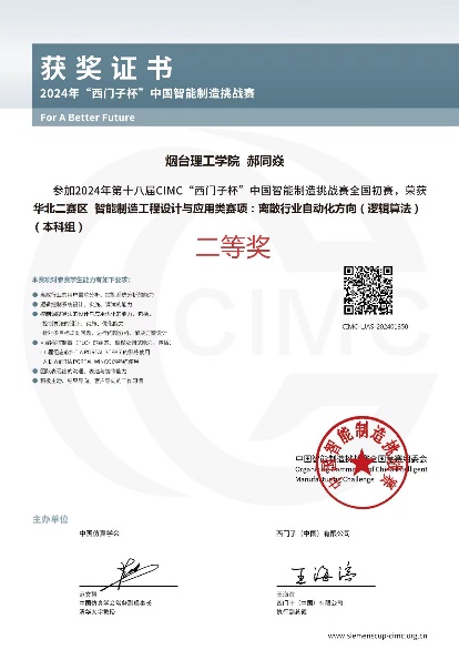 在沈君与姜超老师的悉心指导和培训下,员工们完成了项目设计的程序编写、WinCC画面设计以及调试等内容,并确保了所设计项目的功能完整、运行可靠和界面美观易操作。在赛场上,队员们沉着冷静,团结协作,经过师生们的共同努力,最终在126支队伍中脱颖而出,荣获该赛项省二等奖。