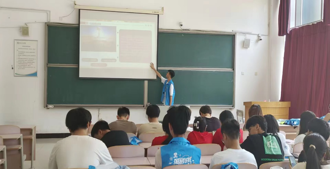 志愿者用PPT带领青少年回顾了从中国“两弹一星”研制,讲述了中国原子弹事业从无到有、从小到大、从弱到强的发展历史以及钱学森等一批科学家的先进事迹。引导青少年从小树立爱国主义思想,进一步激发青少年学科学、爱科学、用科学的浓厚兴趣。