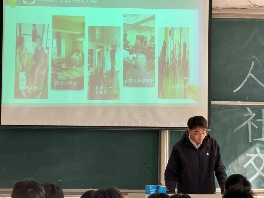 在分享会上,参与过社区实践的同学代表们生动地讲述了他们在实践中的经历与收获。陈浩楠同学分享了自己进行社区实践的案例分析与经验。徐艺鸣同学分享了运用专业知识为社区居民解决实际问题的过程,如帮助老年人了解和使用智能设备,展现了人工智能在改善生活中的强大作用。还有李沛源同学讲述了在社区实践中可能存在的问题,以及给出了相关的解答,并强调了团队合作的重要性。
