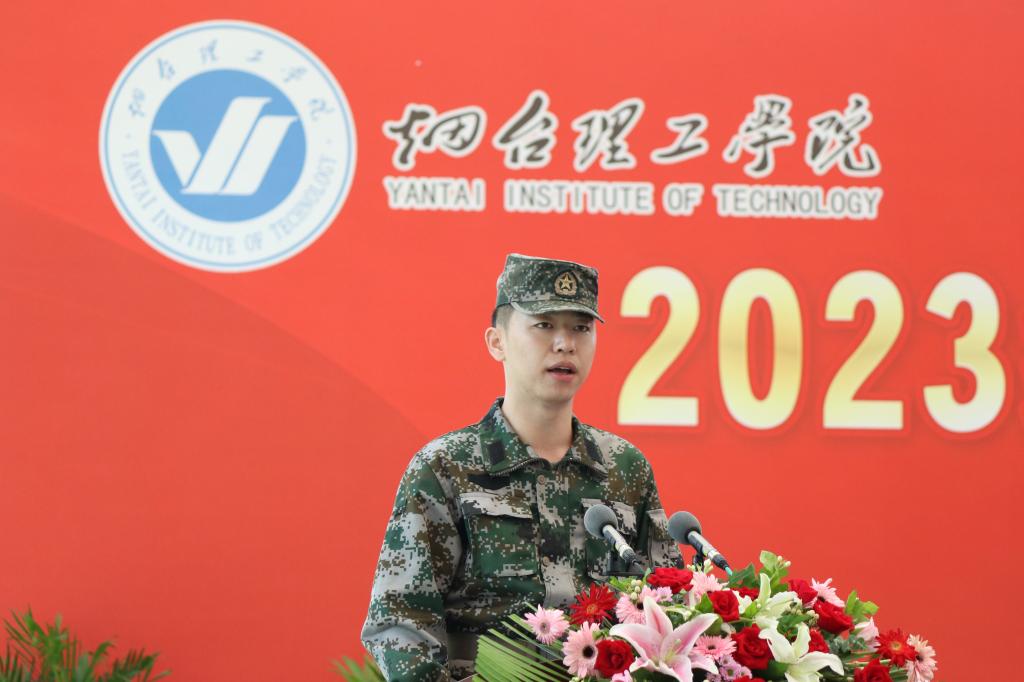军训教官代表张开源在发言中表示,教官们将与老师和员工度过一段充实而有意义的军训生活,将服从命令,以身作则,科学施训,完成好训练任务。
