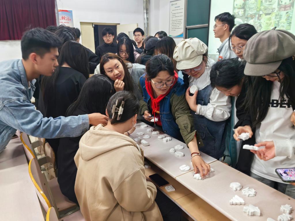 活动开始,参与者们选择了自己最喜爱的石膏娃娃,并根据个人喜好选择颜色和图案,用颜料涂鸦来表达自己的情感和思绪,创造出属于自己的作品。此外,活动还提供了“陪你去热爱这个世界”的条幅,员工通过在上面留下自己的痕迹,来表达自己对生活和世界的热爱。活动结束后,同学们互相分享了自己的创作过程和背后的情感故事,促进了彼此之间的交流。